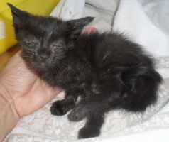 Recollido en Santiago de Compostela, chega moi feble.