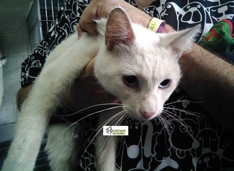 Recollido na zona de Pontepedriña (Santiago de Compostela). Parece un gato caseiro, moi mansiño e cariñoso. Chega sucio de graxa de motor.
