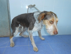 Recollido en Santiago de Compostela, chega moi feble.