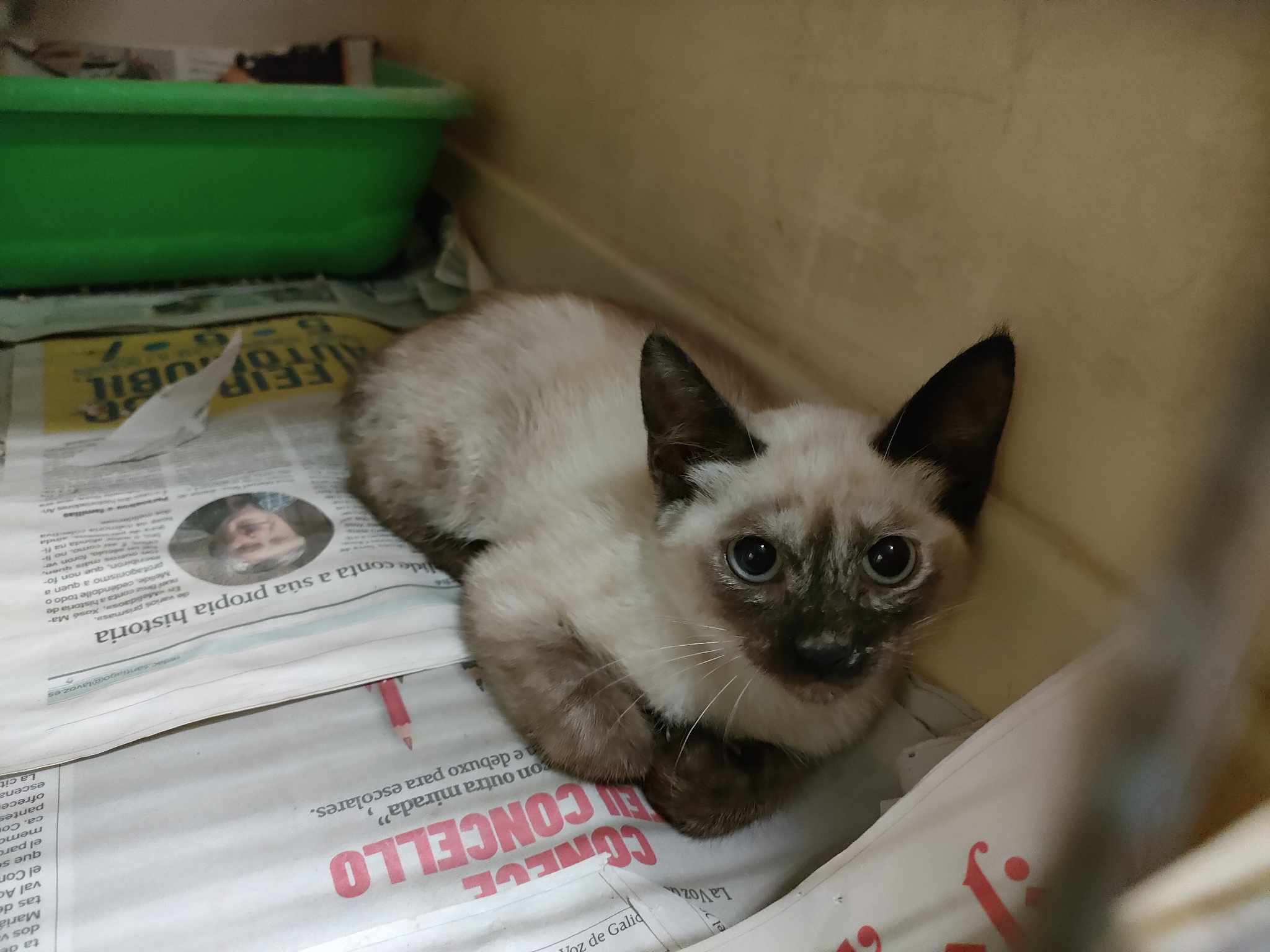 Recollido en Santiago de Compostela, chega moi feble.