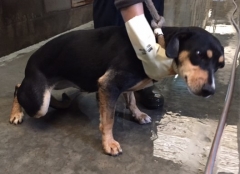Recollido en Santiago de Compostela, chega moi feble.