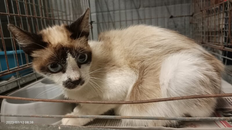 Recollida en Santiago de Compostela. Parece unha gata caseira e chega ferida.