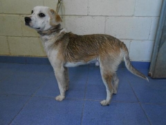 Atopan uns voluntarios na porta do Refuxio. Ao ser un can de caza probablemente quedara no monte ao rematar a xornada. Non ten chip.