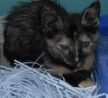 Atopada en Berdía. É moi pequena aínda para comer ela sola, haina que dar biberón. Queda nunha casa de acollida ata que medre.