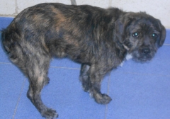 Atopado na estrada de Laraño-Muniña debaixo da ponte da autopista. Moi medosoe tranquilo. Apersoa que os atopou quere ficar con eles.