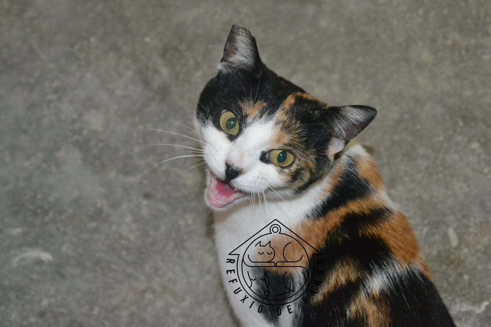 Recollida no concello de Santiago de Compostela. Moi boíña, confiada e alegre. Lévase ben con outros gatos.