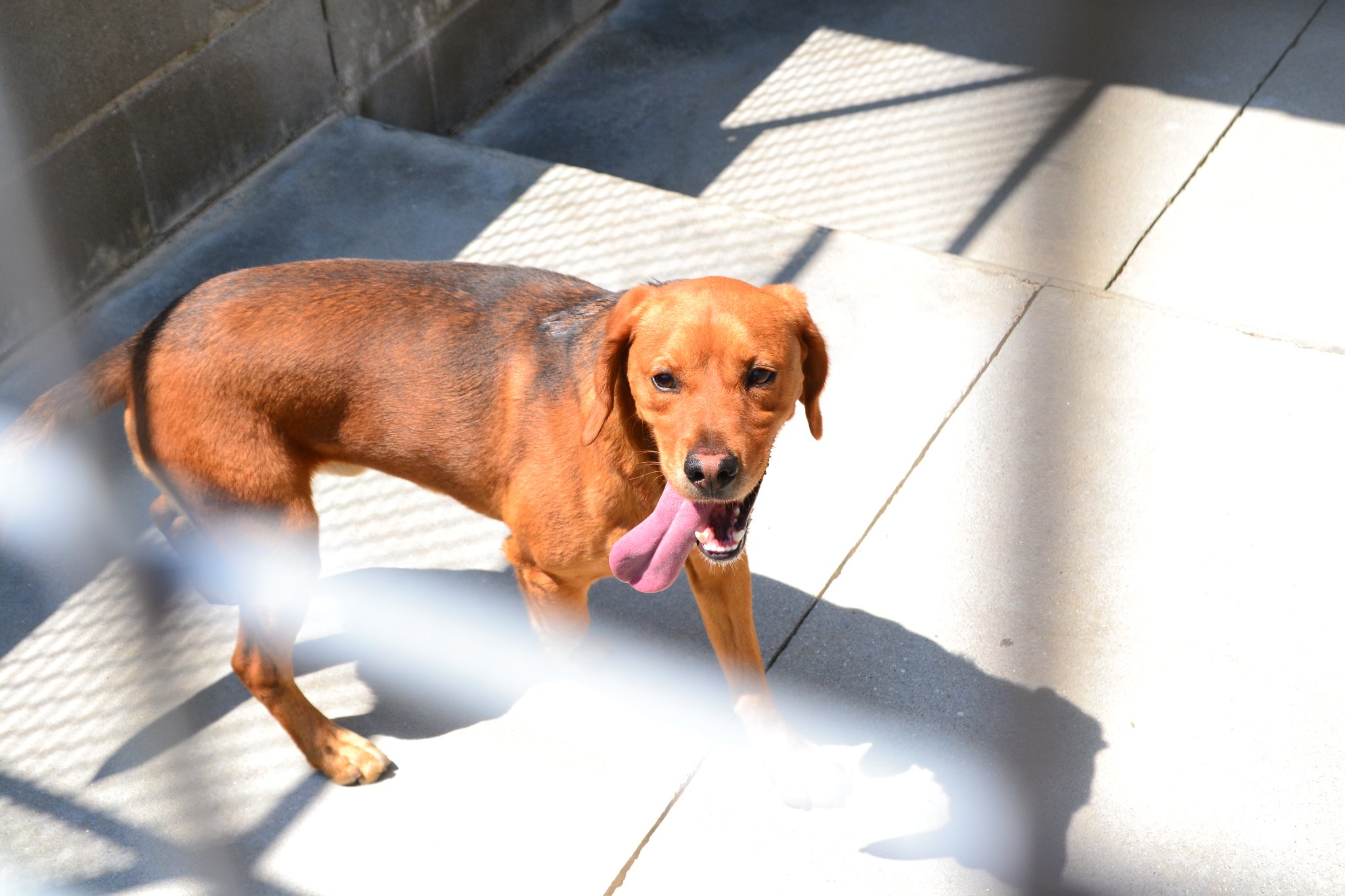 Recollido no lugar de Roán, Santiago de Compostela. Chega cun colar e un anaco de correa ao pescozo.