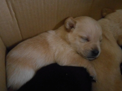 Atopados no Monte a caron da estrada, en San mIguel de Sarandon. Tipica camada sen nai de recen nados de apenas un mes 2 machos e 6 femias.
