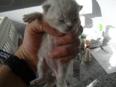 Recollida en Santiago de Compostela. Parece unha gata caseira e chega ferida.