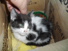 Atopada nunha leira urbana, come pola noite na casa da persoa que o trae, aínda así chega con fame.
