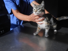 Recollida en Santiago de Compostela. Parece unha gata caseira e chega ferida.
