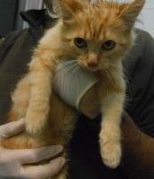 Atoipado na POrta do Refuxio con outros 7 gatiños (7 femias e un macho) de variada idade dende cativos de 2 meses a adultos de 2 anos. Moi boíños e sumisos.Cheos de pulgas.