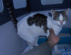 Recollido en Santiago de Compostela, chega moi feble.