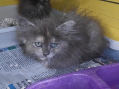 Atopado na porta do Refuxio con 7 gatiños máis, 7 femias e un macho. Moi sumisos e boíños , chegan con moitas pulgas.
