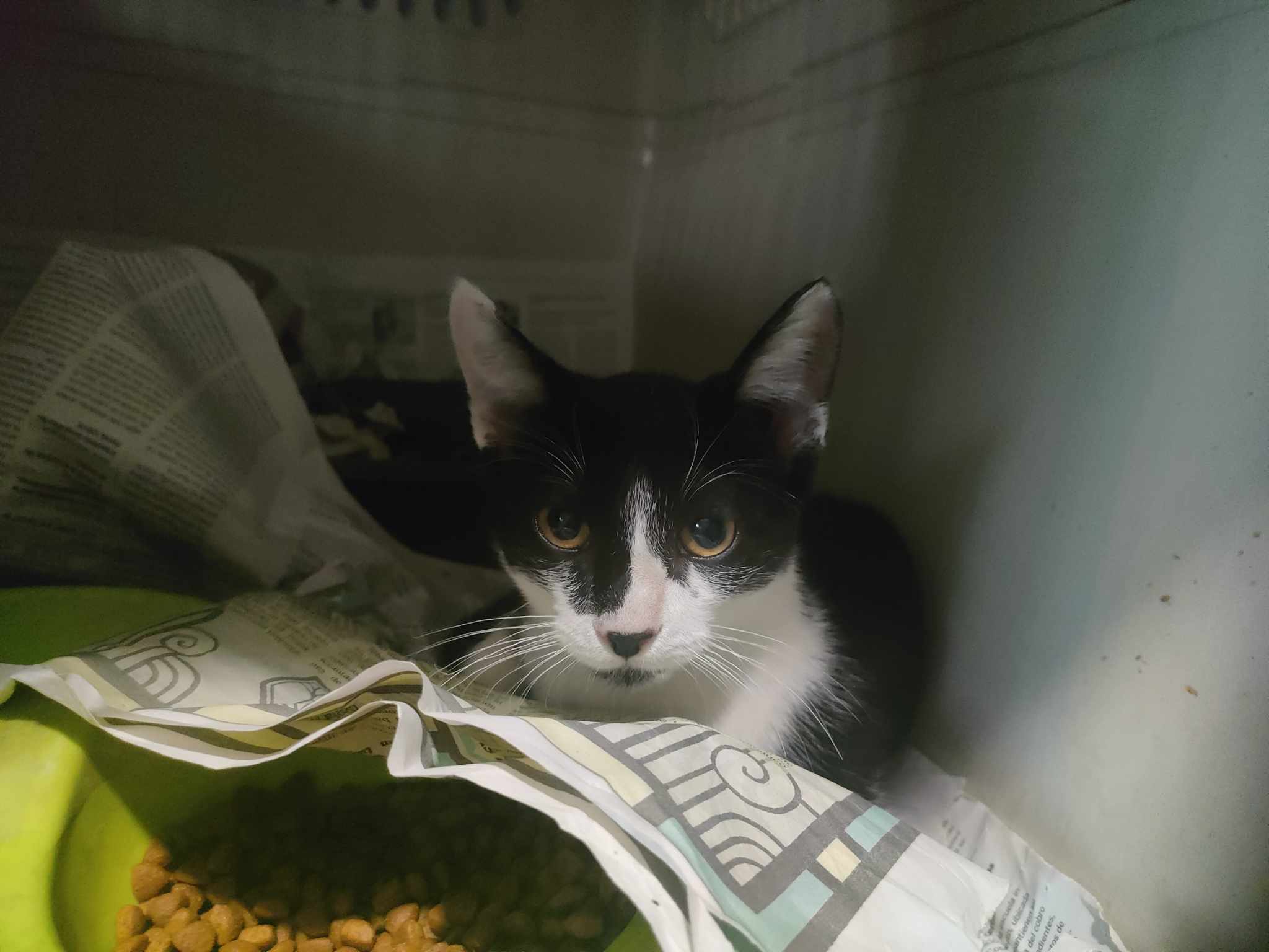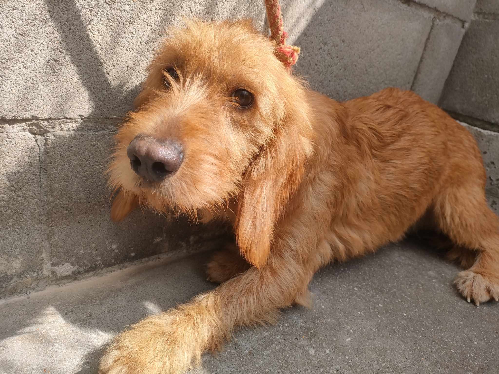 Recollido en Santiago de Compostela, chega moi feble.