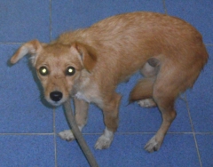 Atopado en Teo con outros dous cans, chega moi asustado epro pronto colle confianza. Moi simpática.