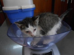 Camada de 2 gatiños posiblemente irmans, macho e femia de apenas 3 meses atopados en san Lazaro pola tardiña, chegan parasitados.