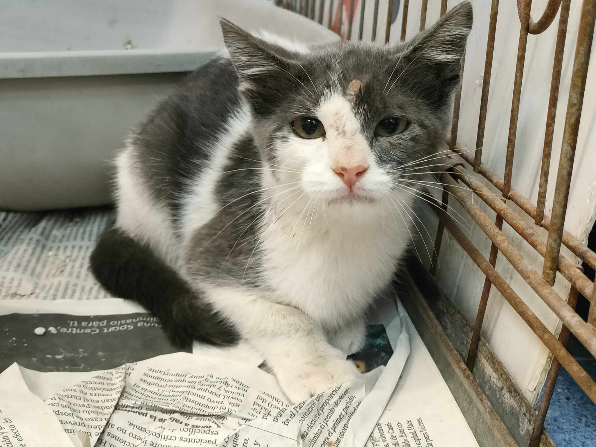 Recollida en Santiago de Compostela. Parece unha gata caseira e chega ferida.