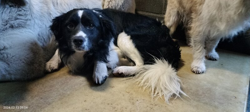 Recollido en Santiago de Compostela, chegou acompañando a un grupo de peregrinos. Viña con outros cans da zona de Silleda.