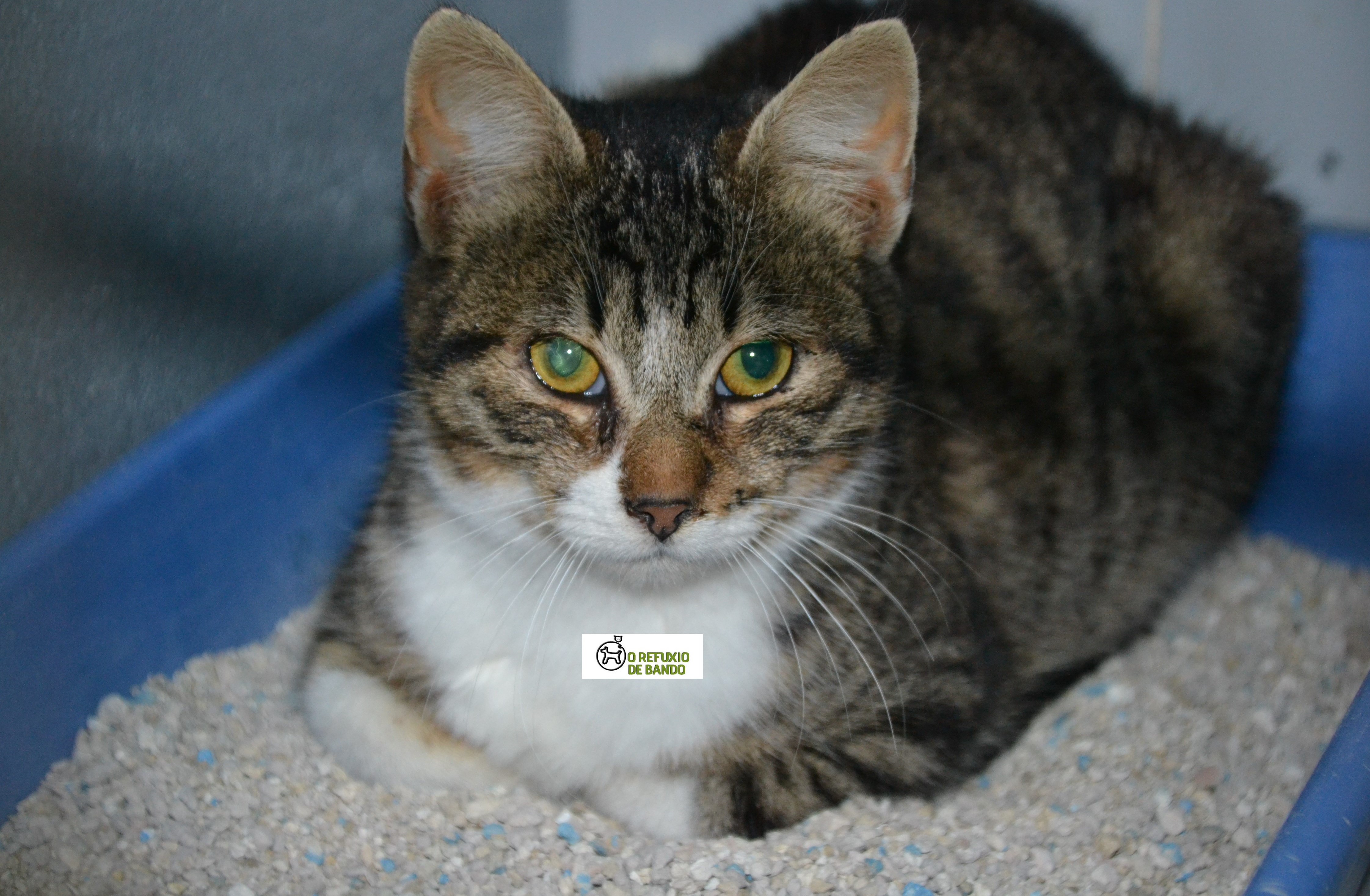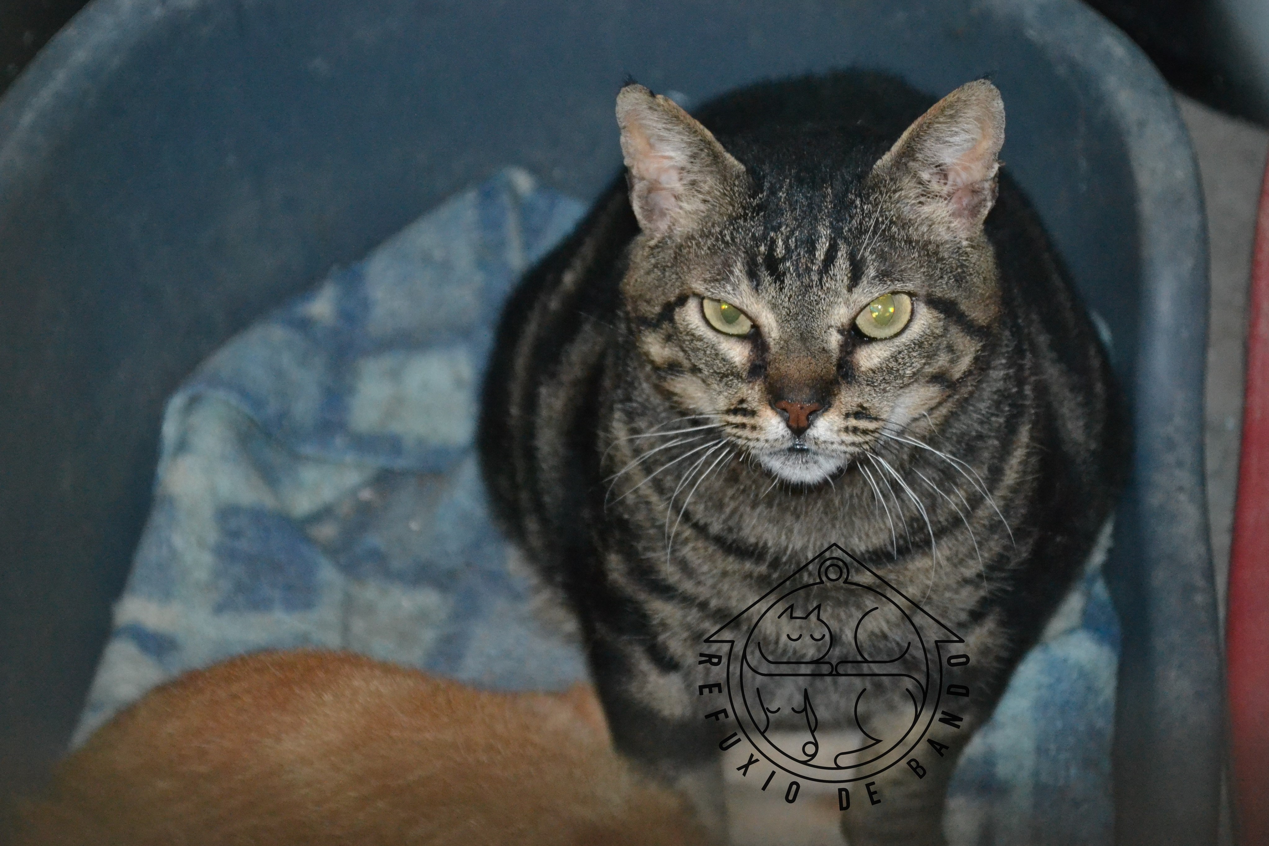 Recollido na zona de Lavacolla. Chega moi asustado e segue a ser bastante medroso, pero é boíño e lévase moi ben con outros gatos.