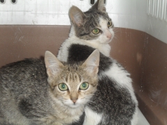 Atopado con outra gata na porta do Refuxio por un traballador a mañá. Deben ser da mesma camada. Son moi boíños e están asustados.