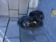 Atopado en Laraño, algo asustado pero moi bo. Chega recollido polo Servicio de Lacería.