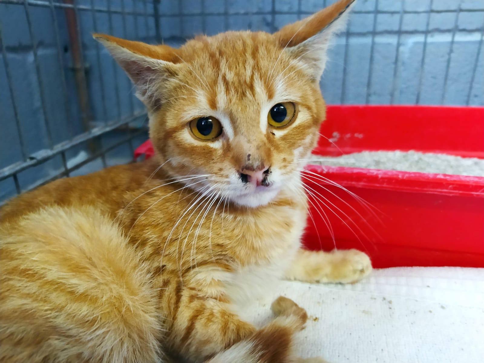 Recollido en Santiago de Compostela, chega moi feble.