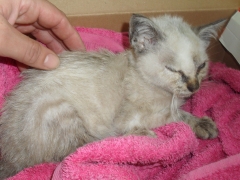 Recollida en Santiago de Compostela. Parece unha gata caseira e chega ferida.