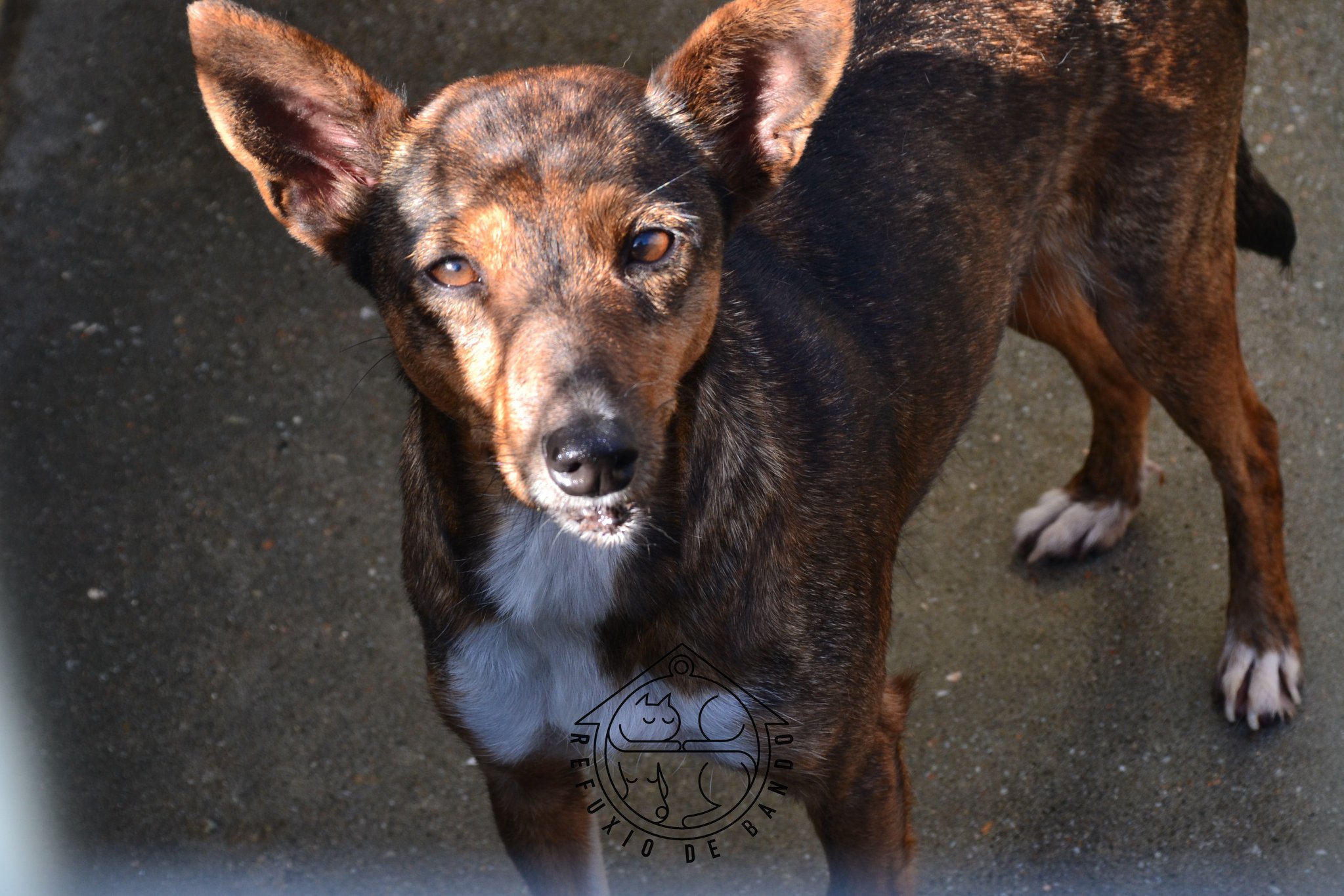 Chegou ao Refuxio o día de fin de ano, xunto con outros 17 cans da súa mesma familia, entre eles os seus dous cachorros que xa están adoptados. Viña moi asustada pero pouco a pouco vai collendo confianza e é moi boíña A ver se ten sorte e non tarda en atopar un fogar. Entregarase con contrato de adopción, desparasitada, vacinada, con chip e esterilizada.
