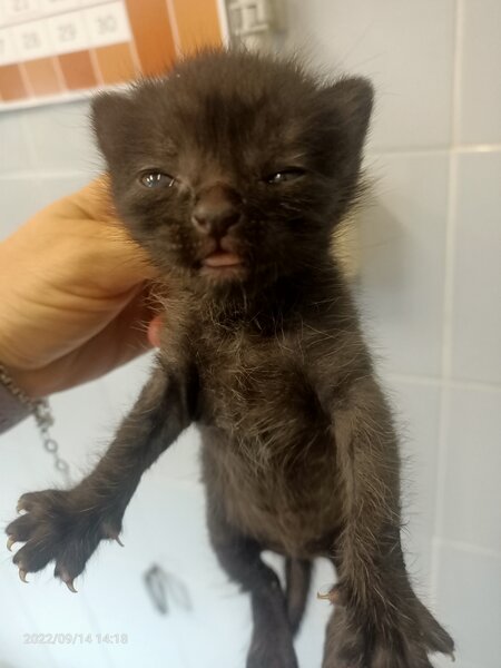 Recollido en Santiago de Compostela, chega moi feble.