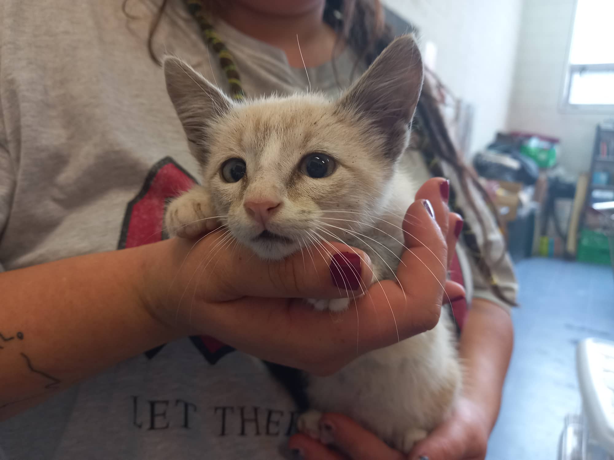 Recollida en Santiago de Compostela. Parece unha gata caseira e chega ferida.