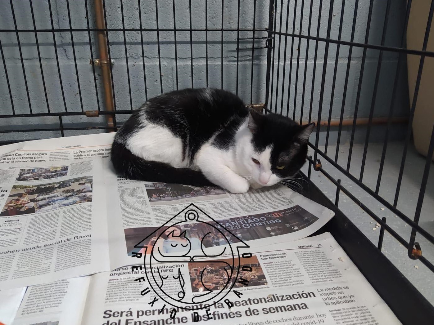 Recollido en Santiago de Compostela, chega moi feble.