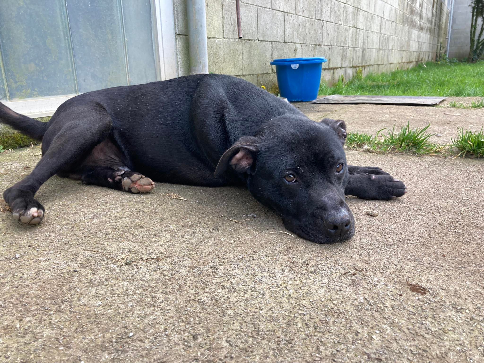 Recollido no concello de Santiago de Compostela, chega ferido. É moi alegre e sociable.