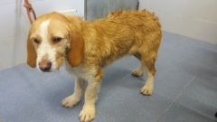 Recollido en Santiago de Compostela, chega moi feble.