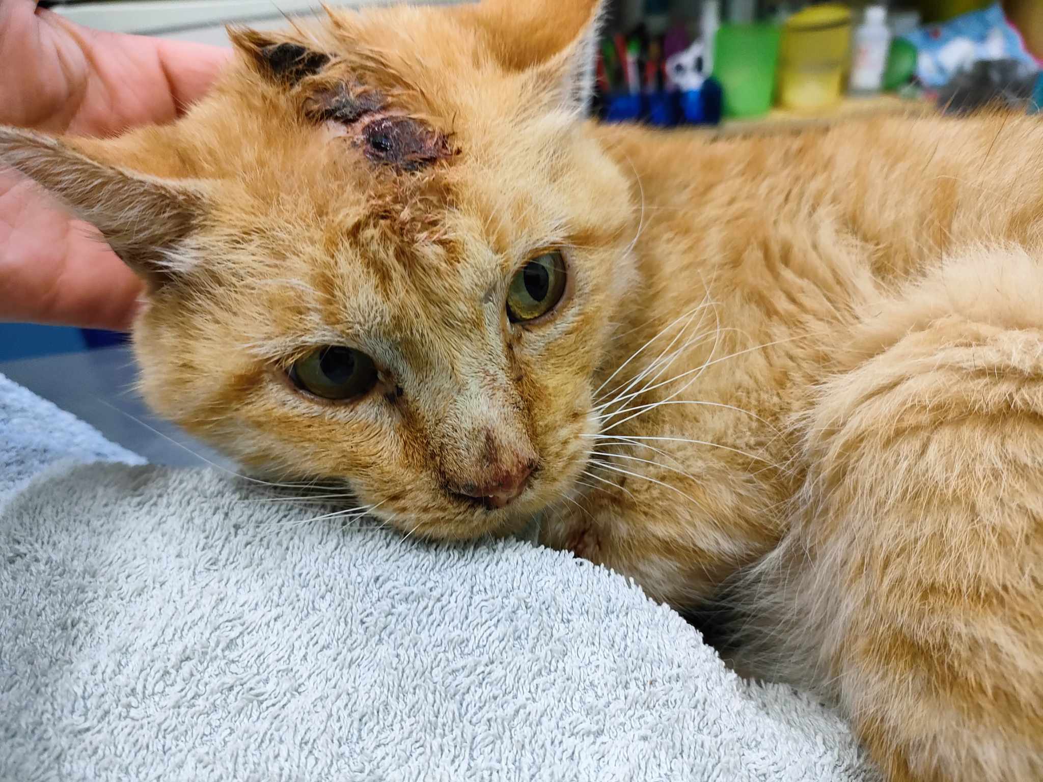 Recollida en Santiago de Compostela. Parece unha gata caseira e chega ferida.