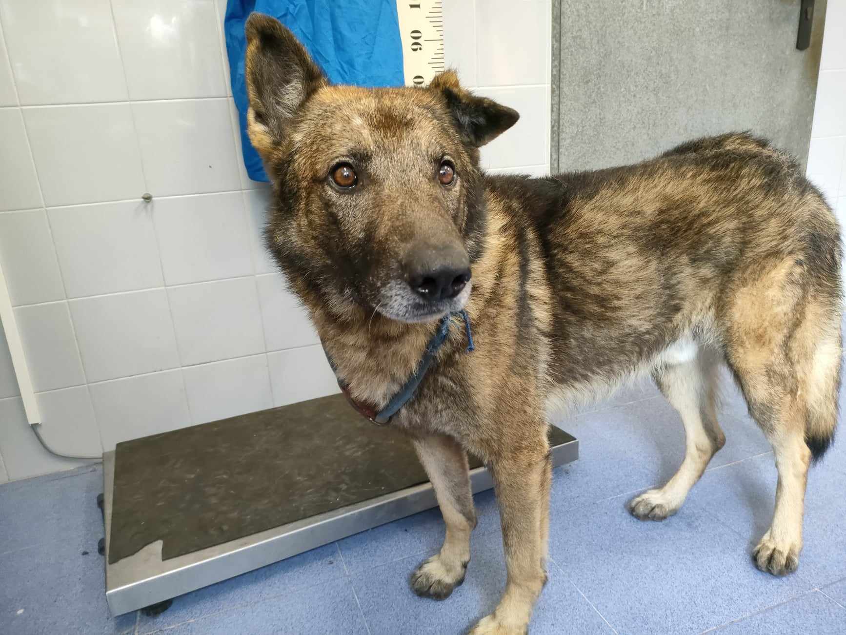 Recollido en Santiago de Compostela, chega moi feble.