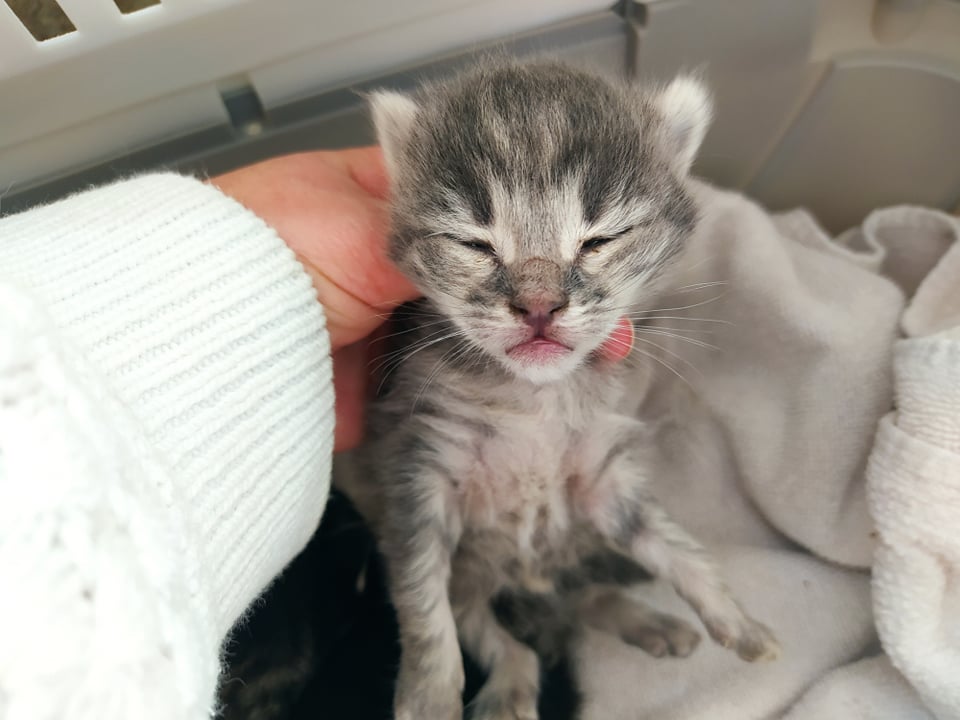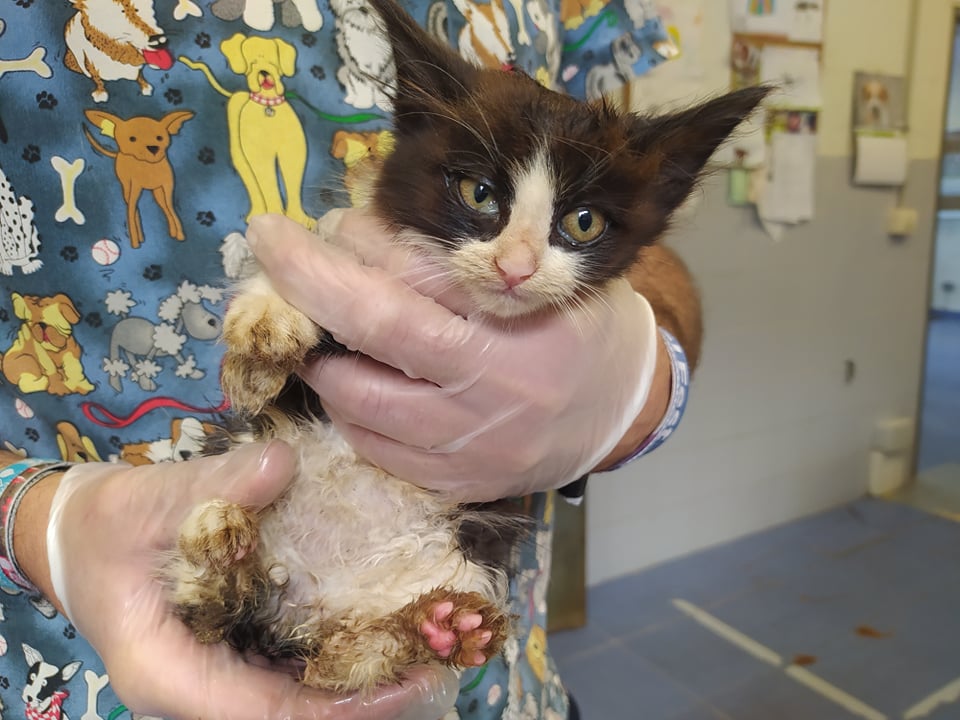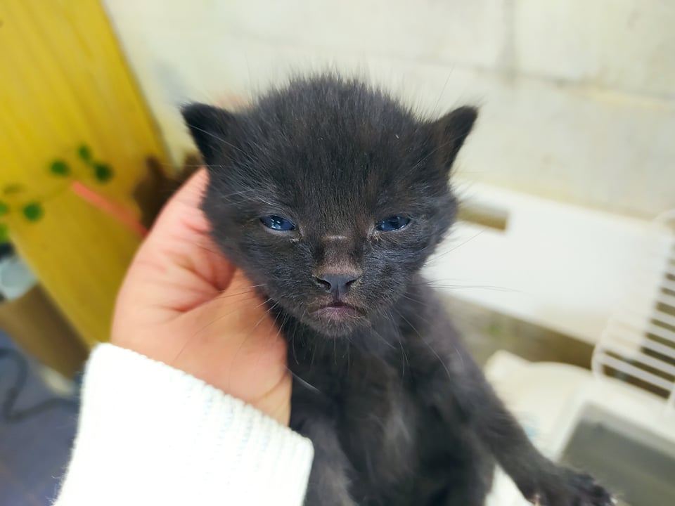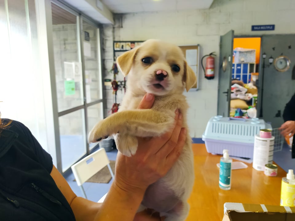 Recollido en Santiago de Compostela, chega moi feble.