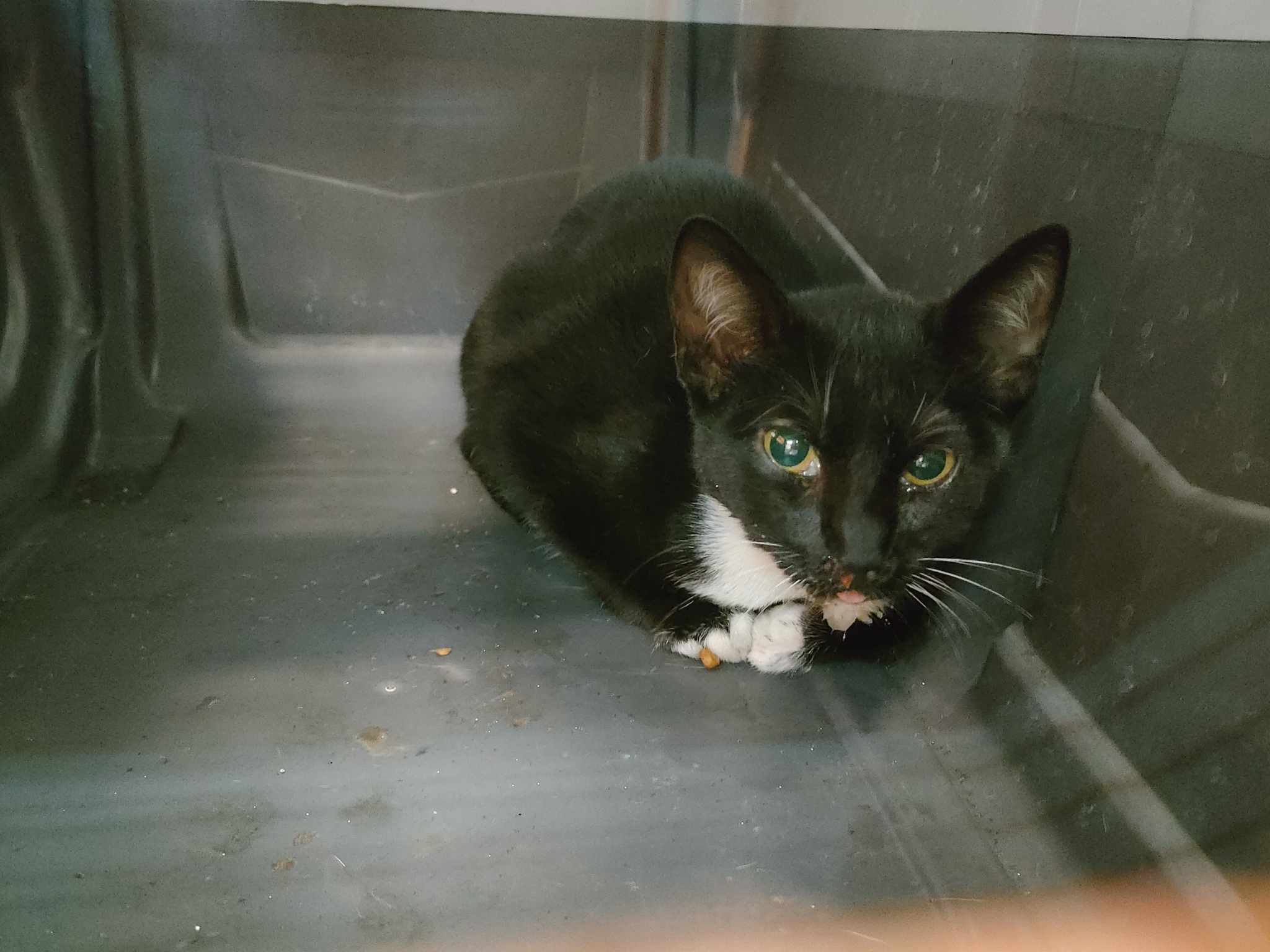 Recollido en Santiago de Compostela, chega moi feble.