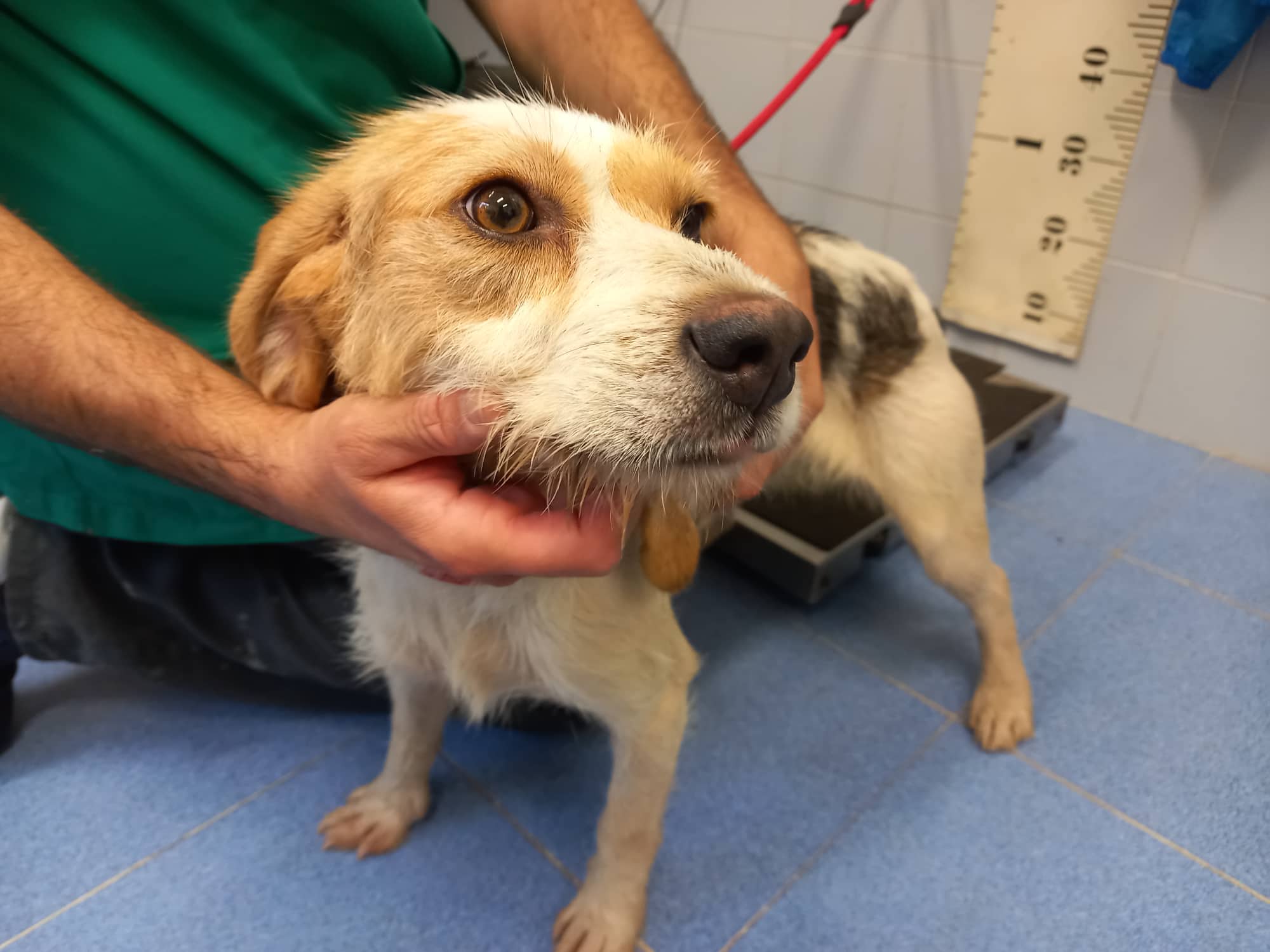 Recollido en Santiago de Compostela, chega moi feble.