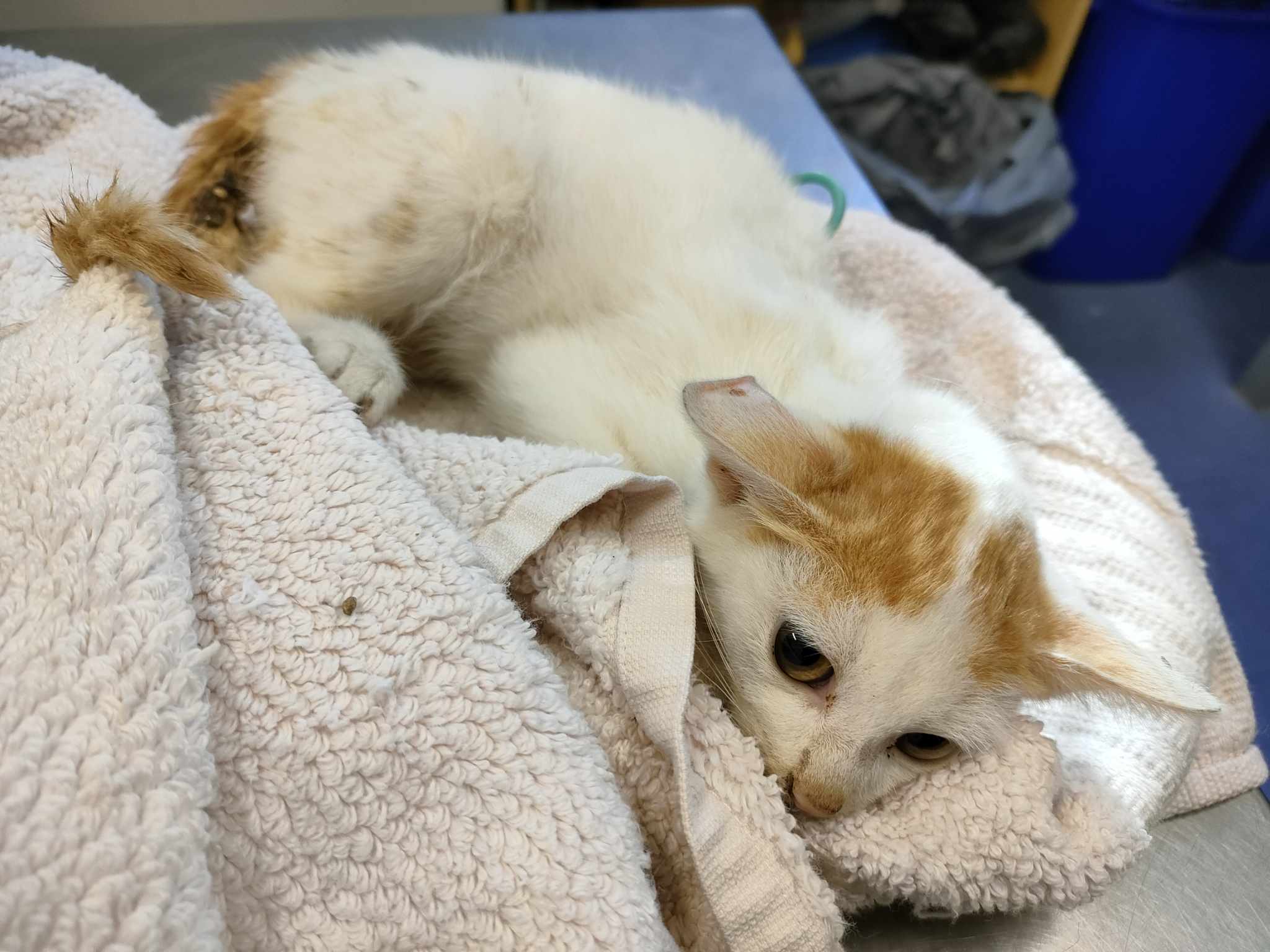 Recollida en Santiago de Compostela. Parece unha gata caseira e chega ferida.