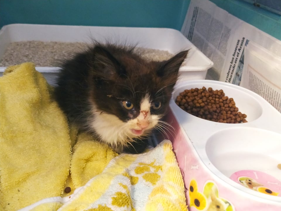 Recollida en Santiago de Compostela. Parece unha gata caseira e chega ferida.