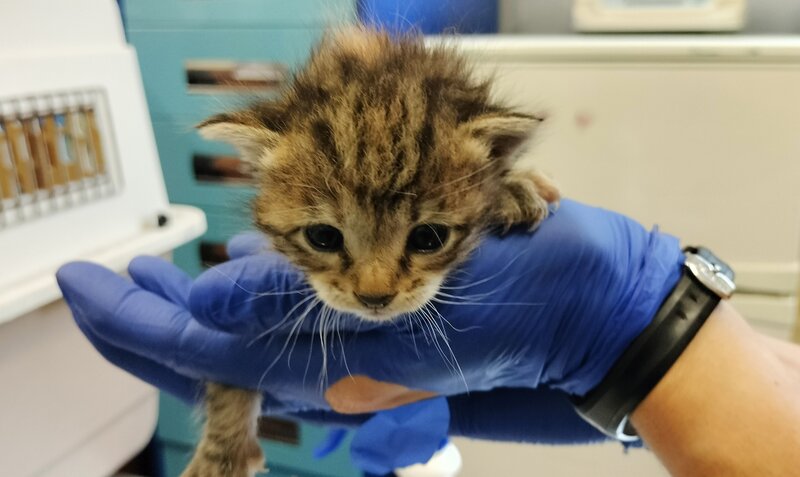 Recollida en Santiago de Compostela, con poucos días de vida, xunto cos seus irmáns.