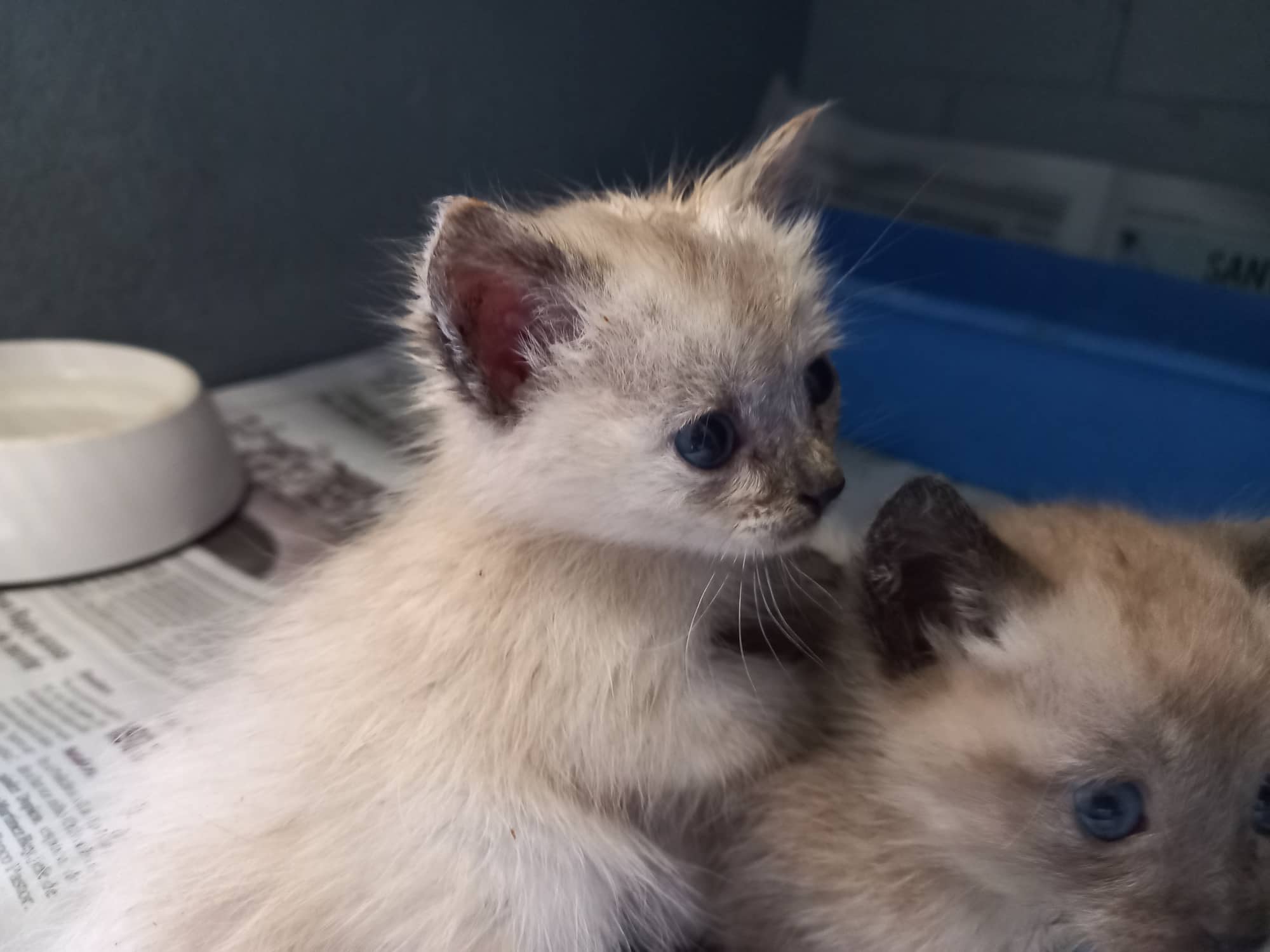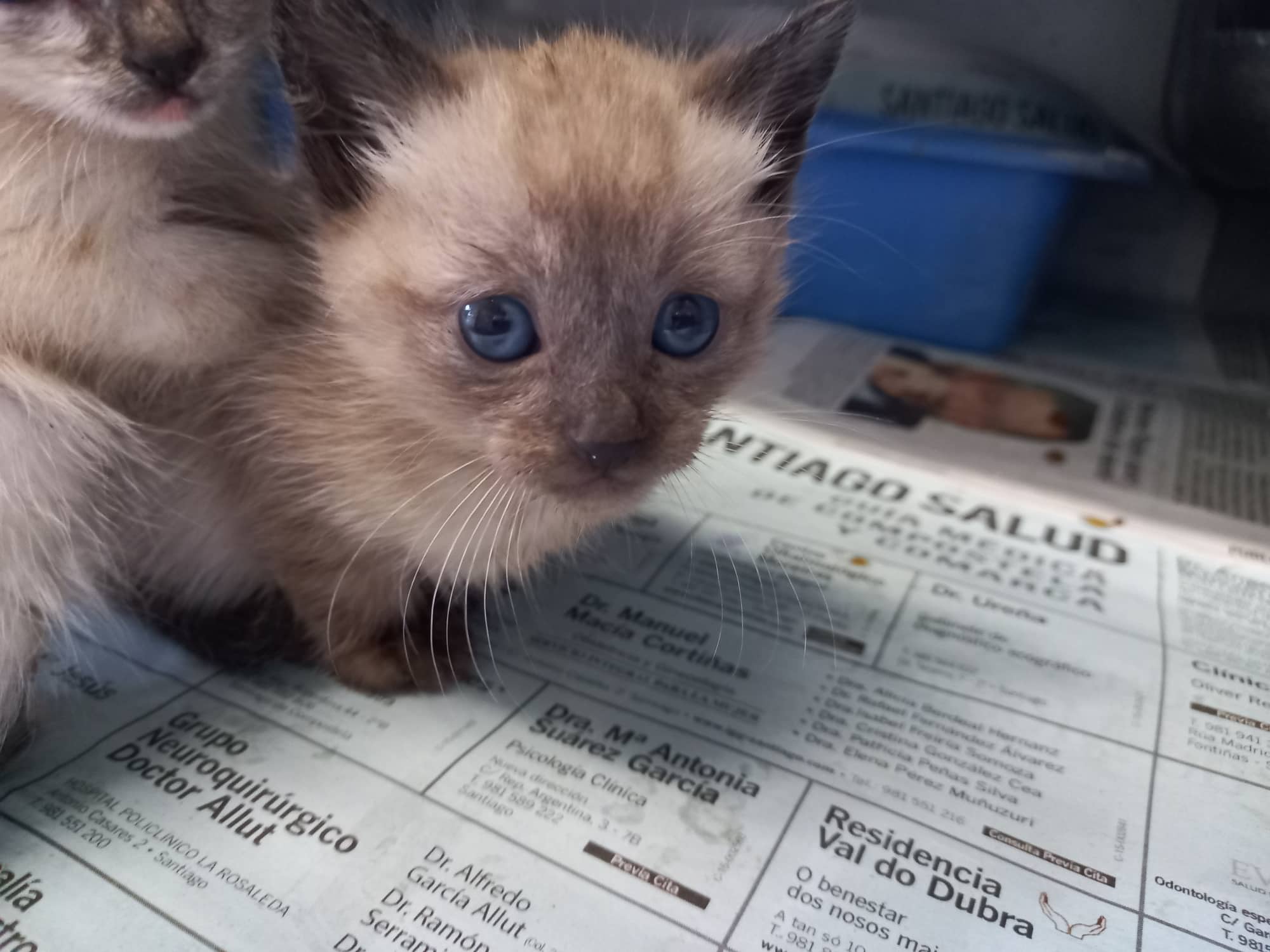 Recollido xunto cos seus dous irmáns nunha colonia felina de Santiago de Compostela, onde foron abandonados.