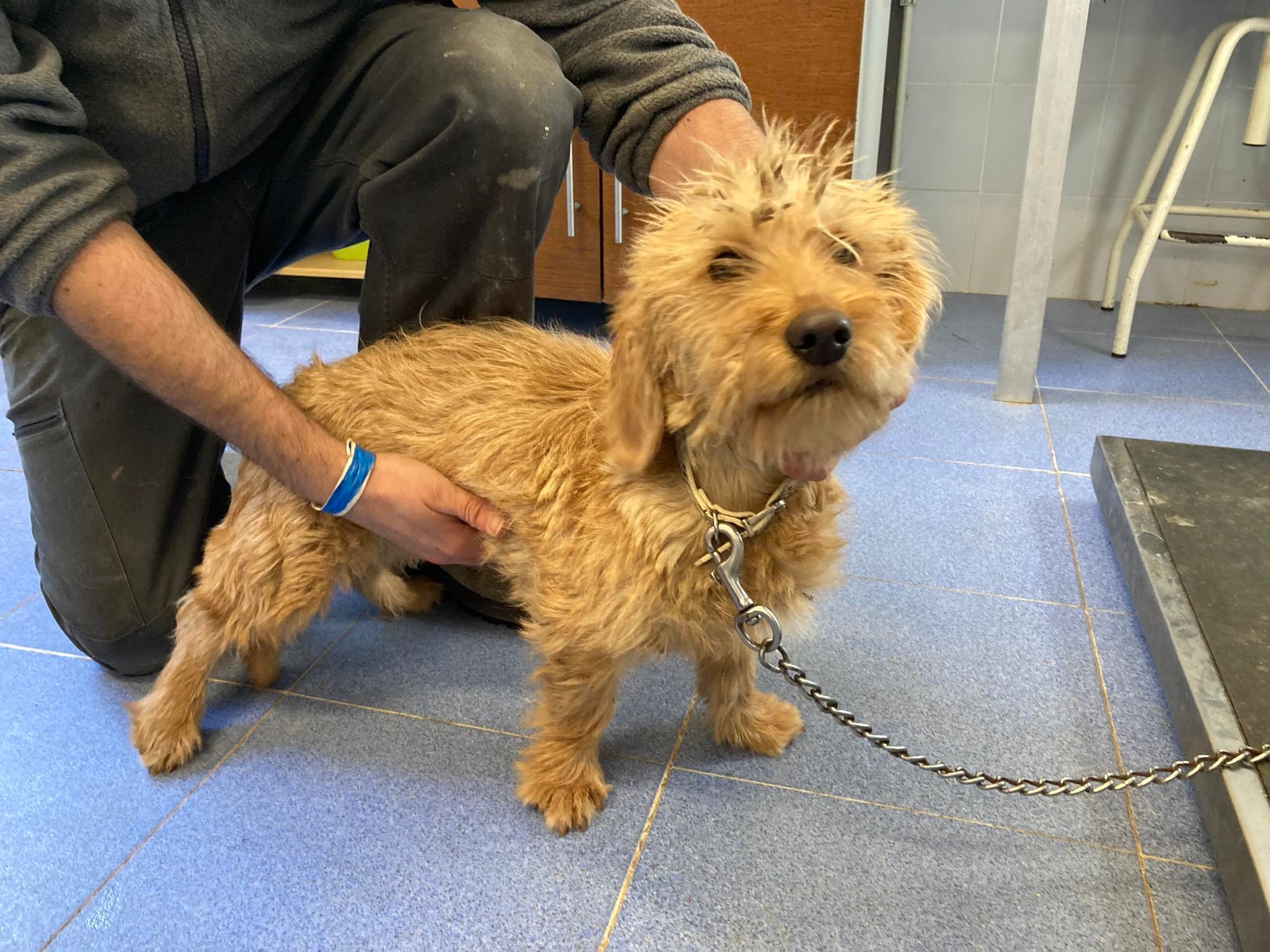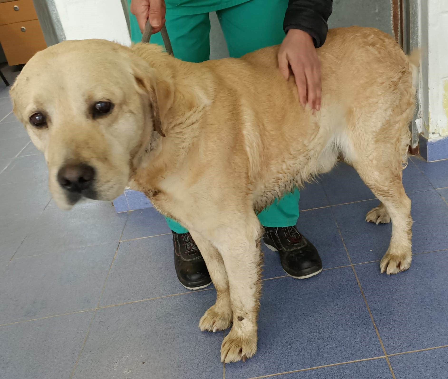 Recollido en Santiago de Compostela, chega moi feble.