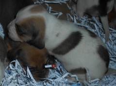 A súa nai leva pola zona de Xesta (Teo) preto de dous meses. Déronlles comida e a nai quedou por alí ata que pareu o 29 de novembre 8 cadelos. Costou collelos pero conseguiron coller a tódala familia.