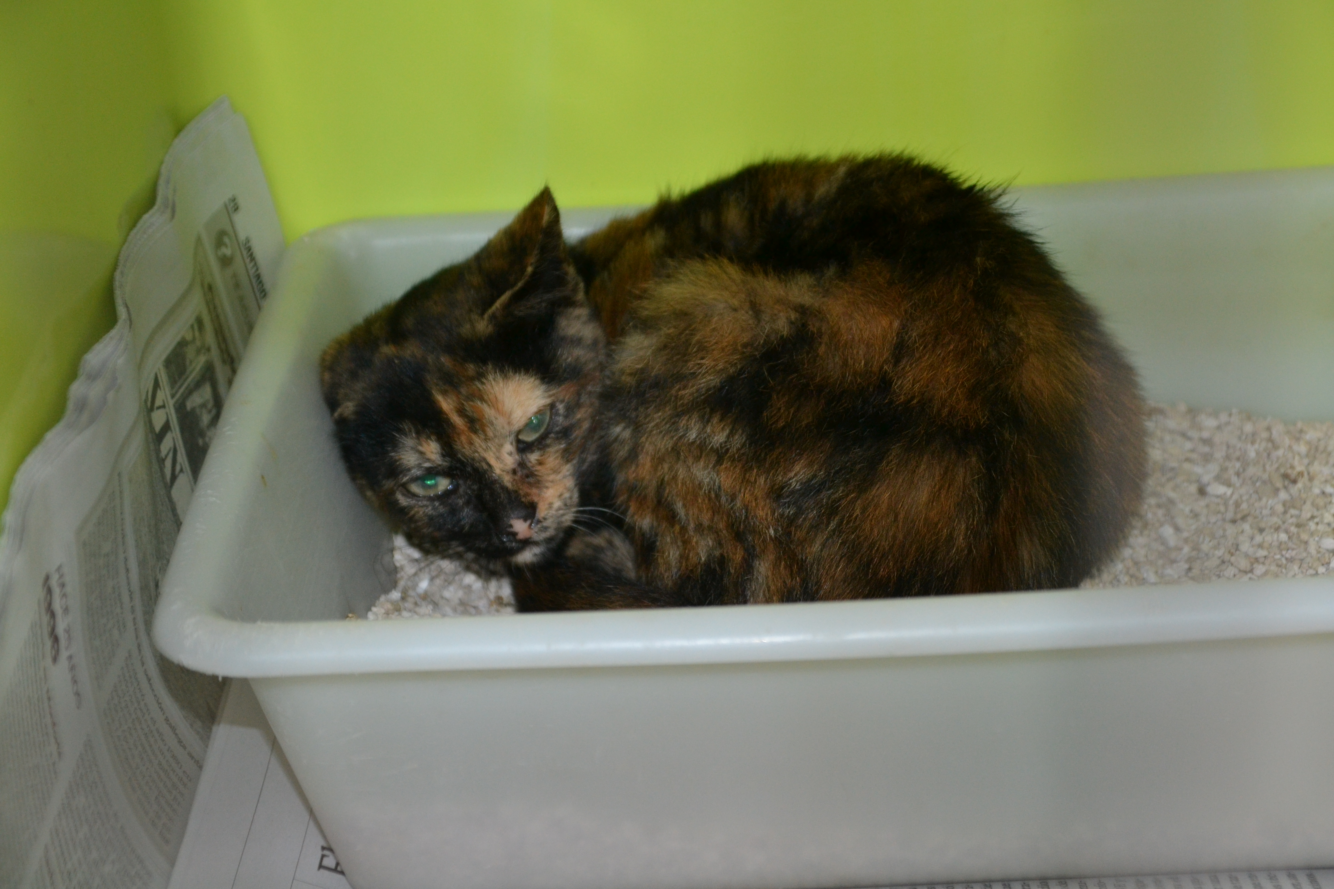 Recollido en Santiago de Compostela, chega moi feble.