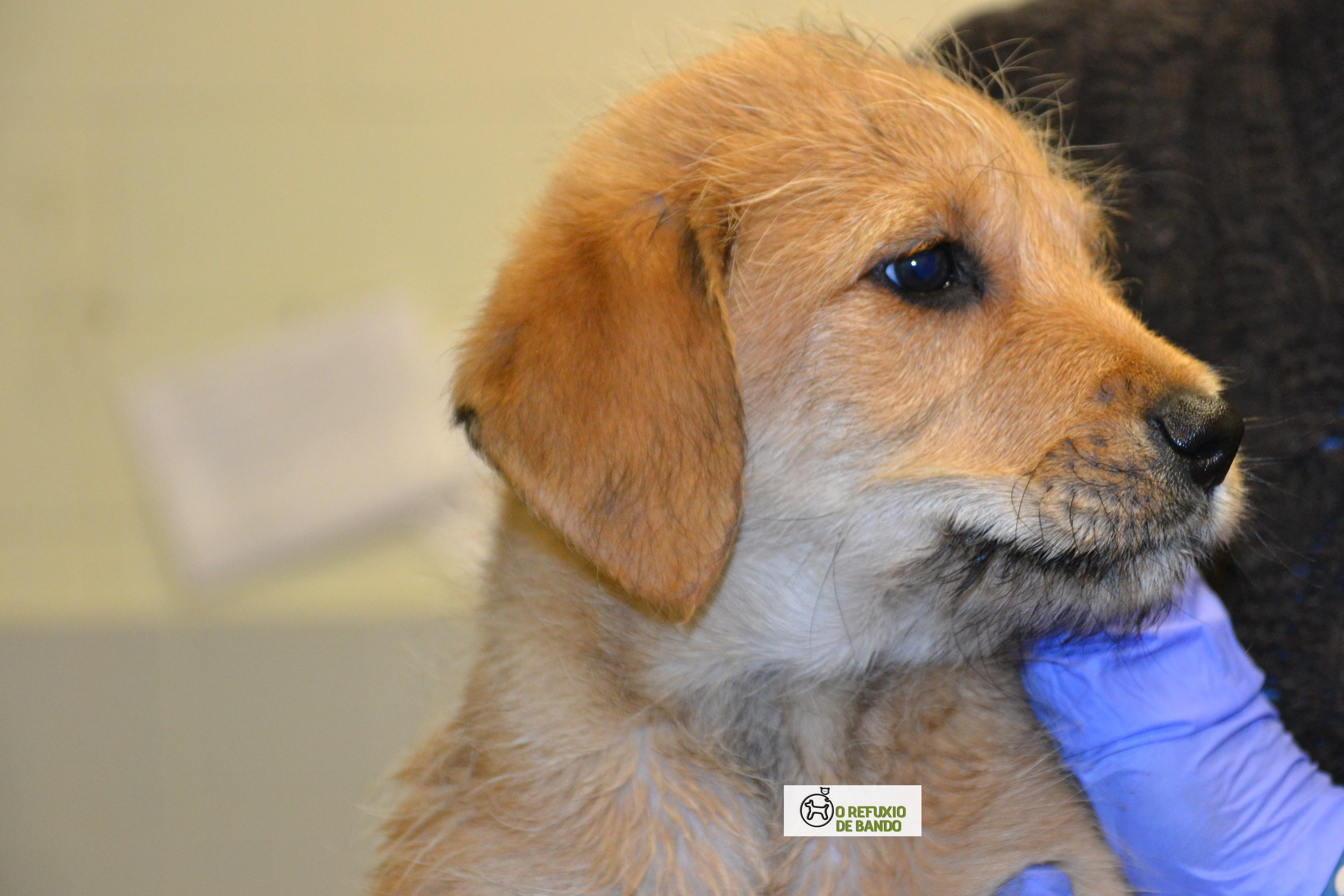 Atopado xunto cos seus dous irmáns na porta do Refuxio. Moi alegre e sociable.