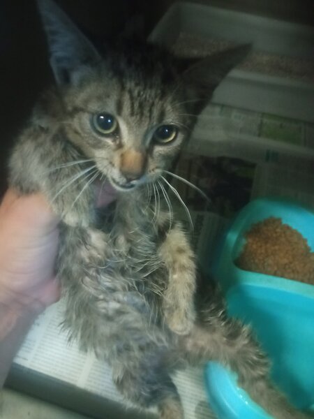 Recollido en Santiago de Compostela, chega moi feble.