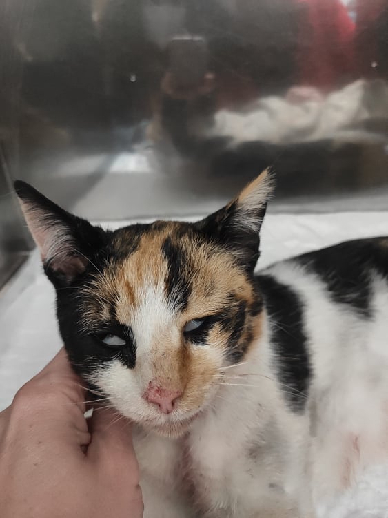 Recollida en Santiago de Compostela. Parece unha gata caseira e chega ferida.
