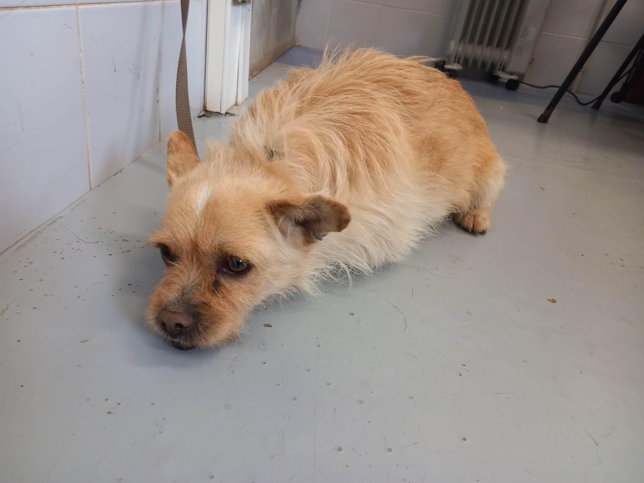 Recollido en Santiago de Compostela, chega moi feble.